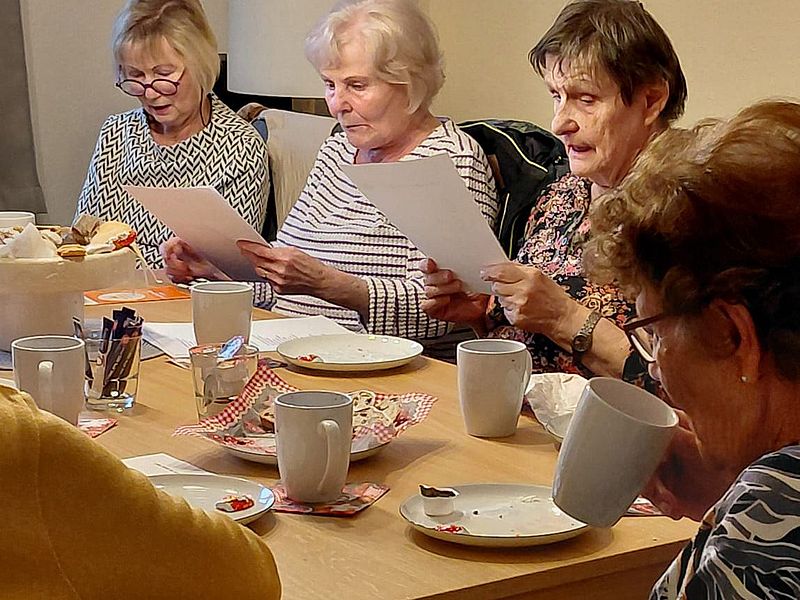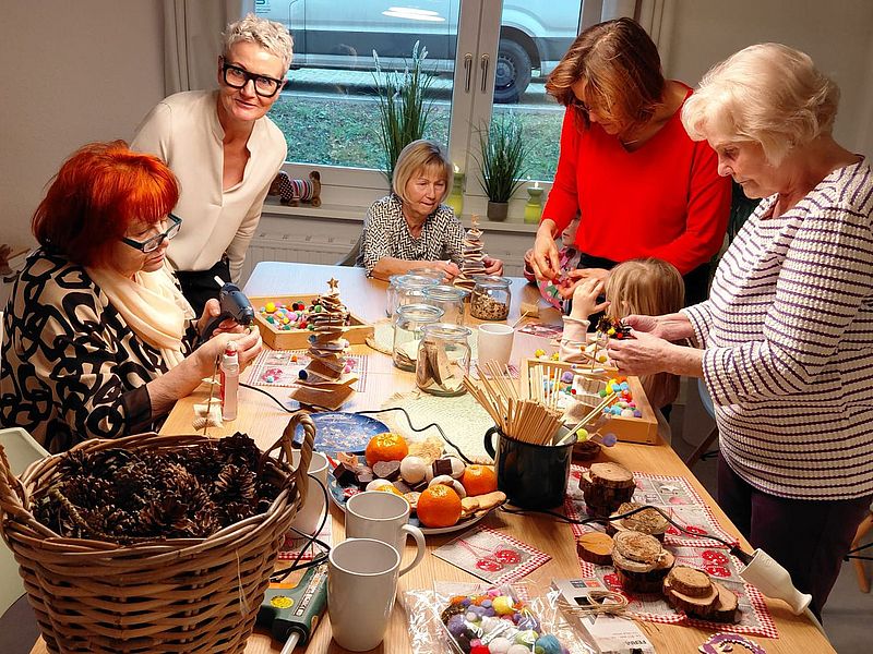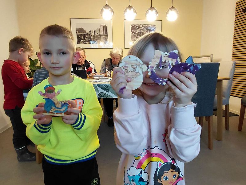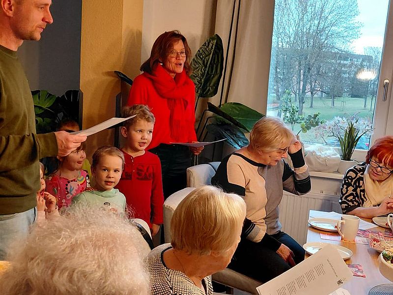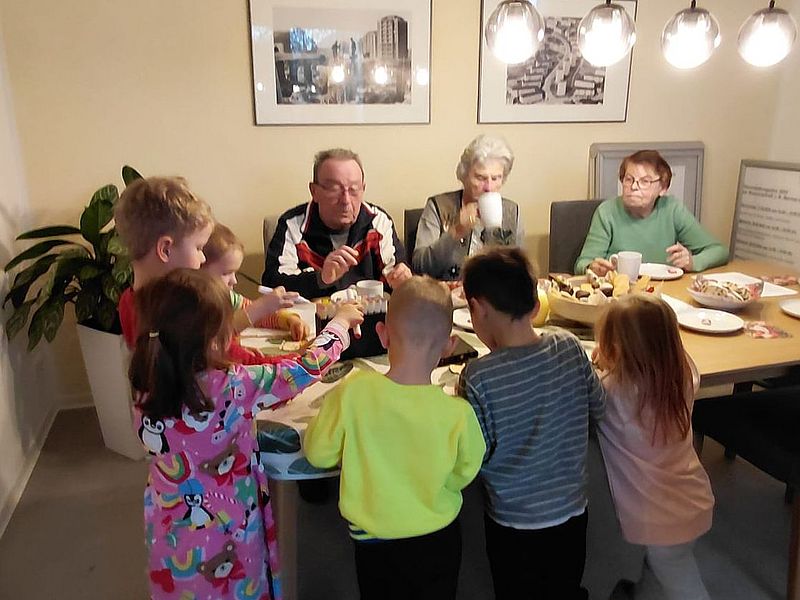 Am 10. Dezember 2025 waren Kinder aus der Kita »Krümel« zu Besuch bei den Seniorinnen im Bewohnertreff der GWB »Elstertal« in der Johannes-R.-Becher Straße 8 in Bieblach. Gemeinsam wurden Weihnachtslieder gesungen und kleine Tannenbäume gebastelt. Die Weihnachtstafel war für die Kinder mit Kakao, Plätzchen und reichlich Weihnachtsleckereien gedeckt. Die Seniorinnen haben den Nachmittag mit Kaffee, Glühwein und Stollen stimmungsvoll ausklingen lassen.