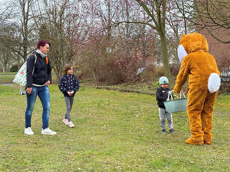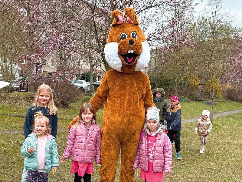 Zur großen Freude der Kinder war der sonst eher scheue Hase selbst bei der Ostereiersuche mit dabei.